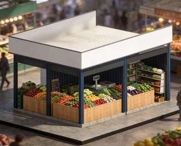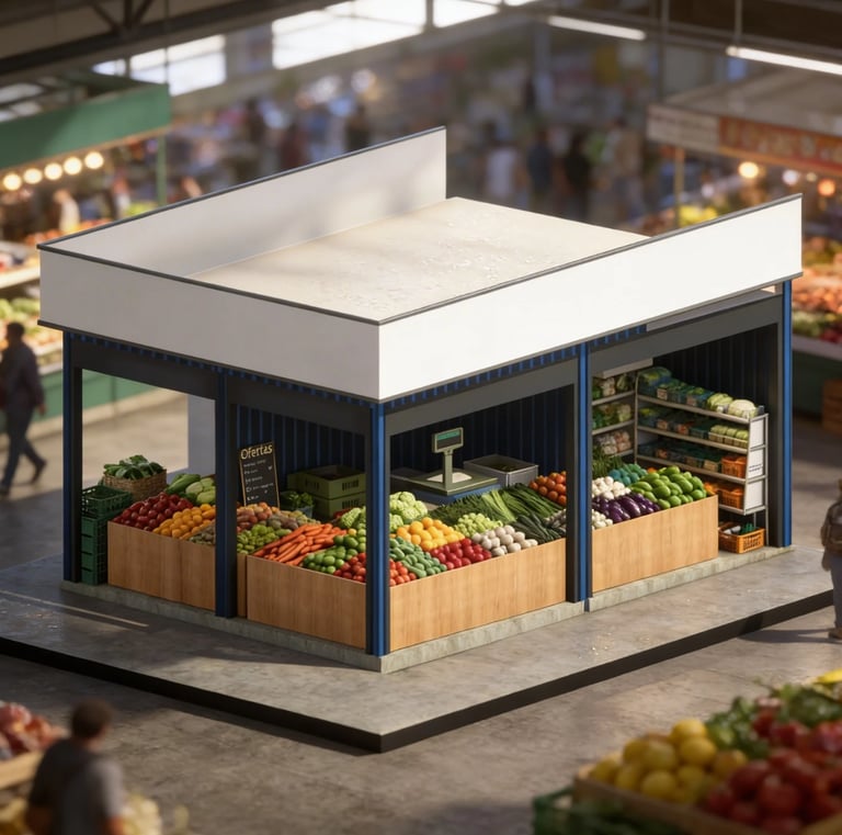 Locales destinados a la venta de verduras frescas, organizados para facilitar la exhibición, el flujo de clientes y una experiencia de compra cómoda y ordenada.